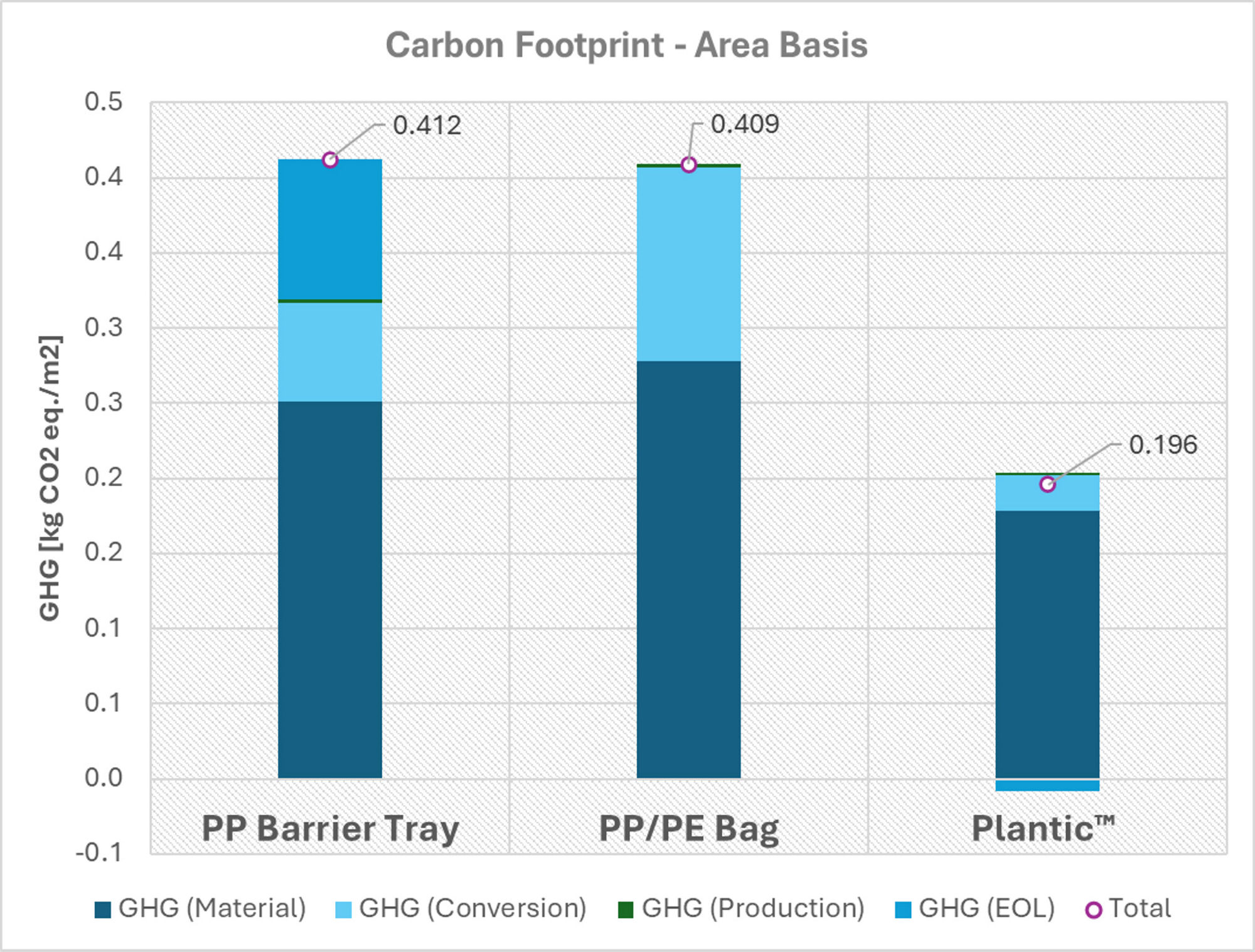 | GHGs | 50% less than conventional PET barrier & non barrier |